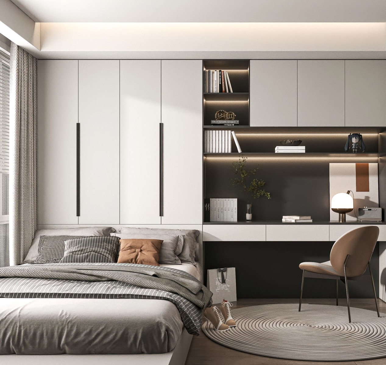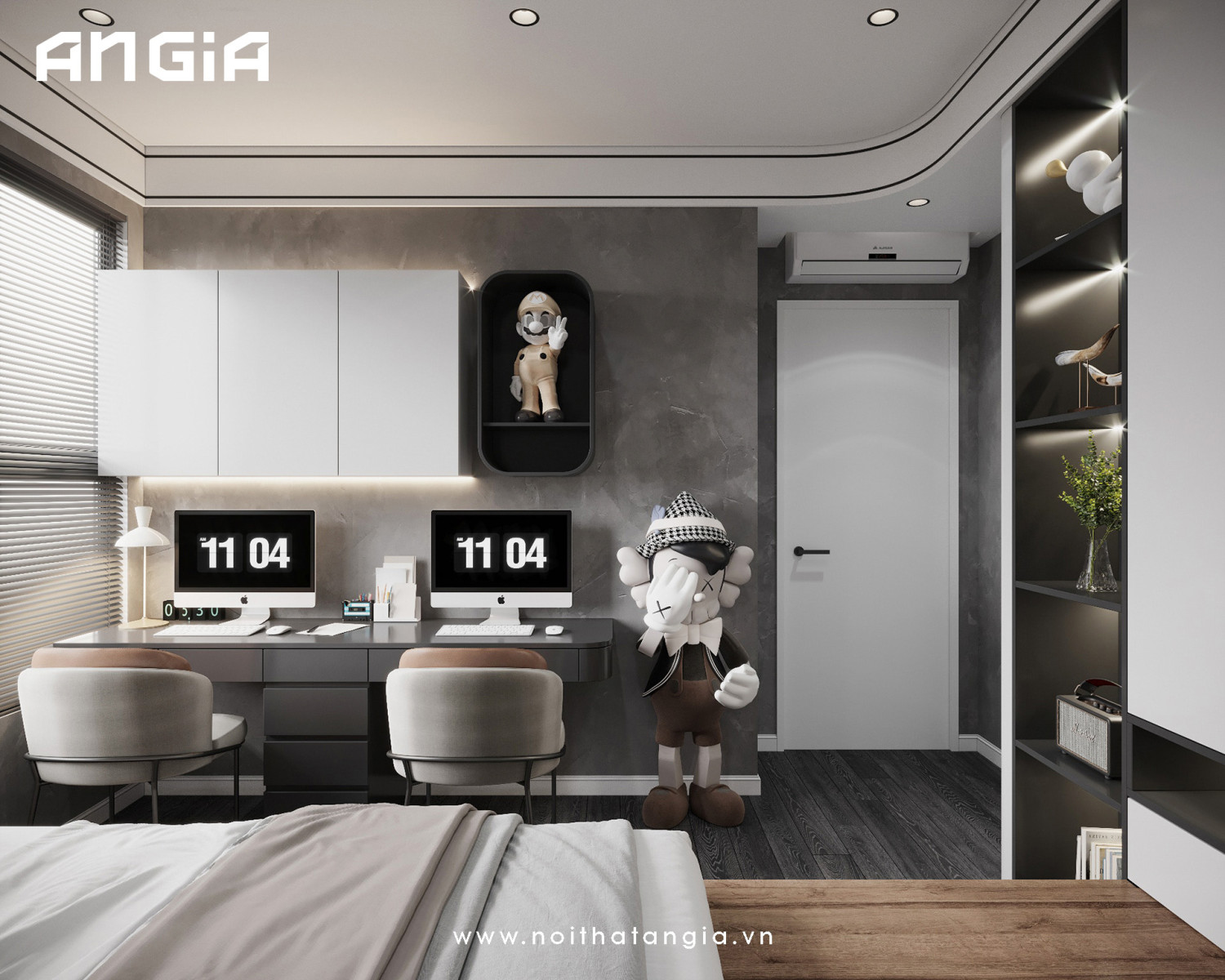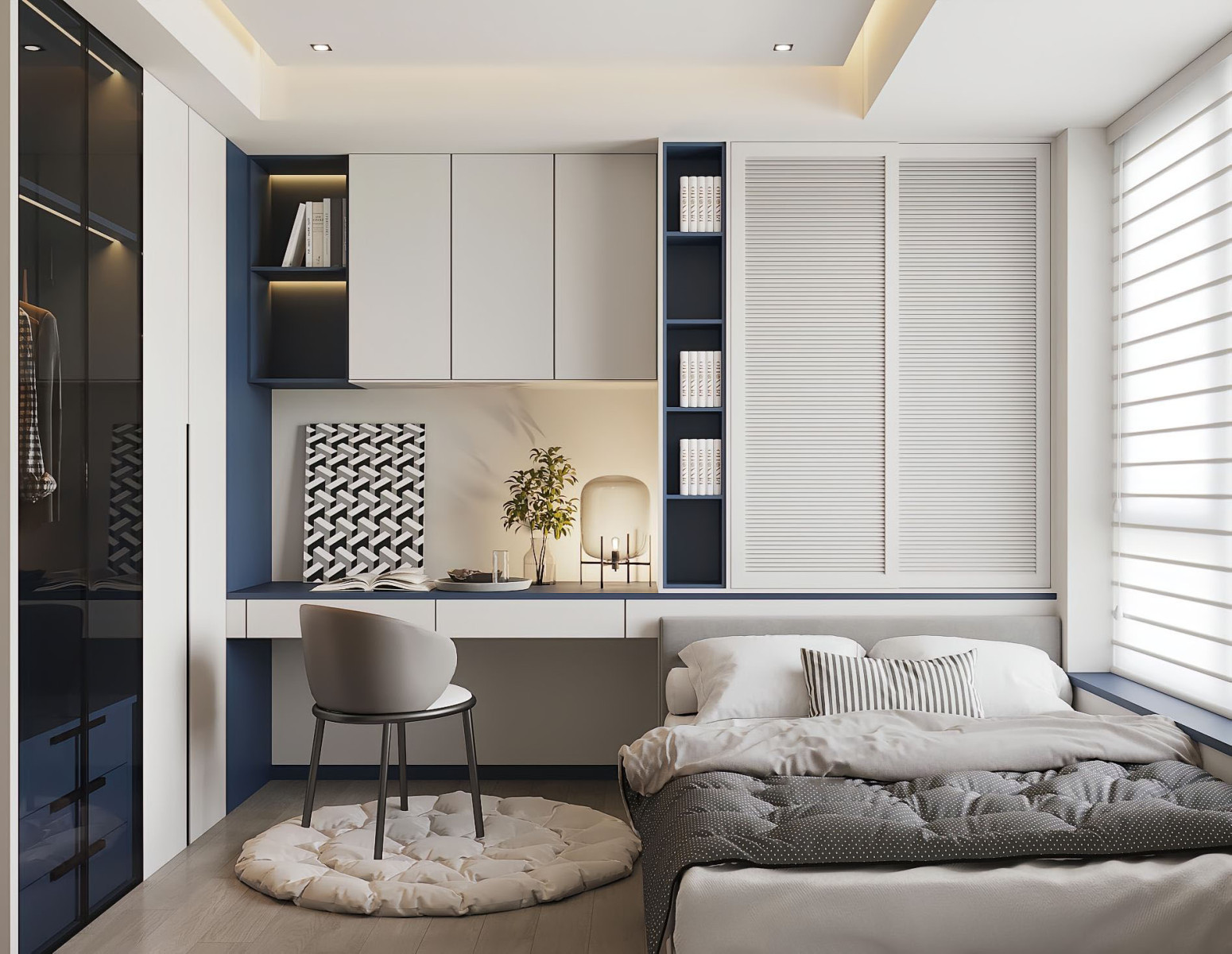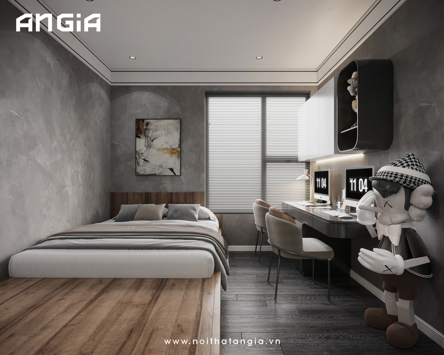 4. Tích hợp không gian học tập: Đặt một khu vực học tập tại phòng ngủ với bàn học và ghế ngồi thoải mái. Bạn có thể tích hợp các giải pháp lưu trữ thông minh để giúp trẻ dễ dàng truy cập vào sách vở và đồ dùng học tập.