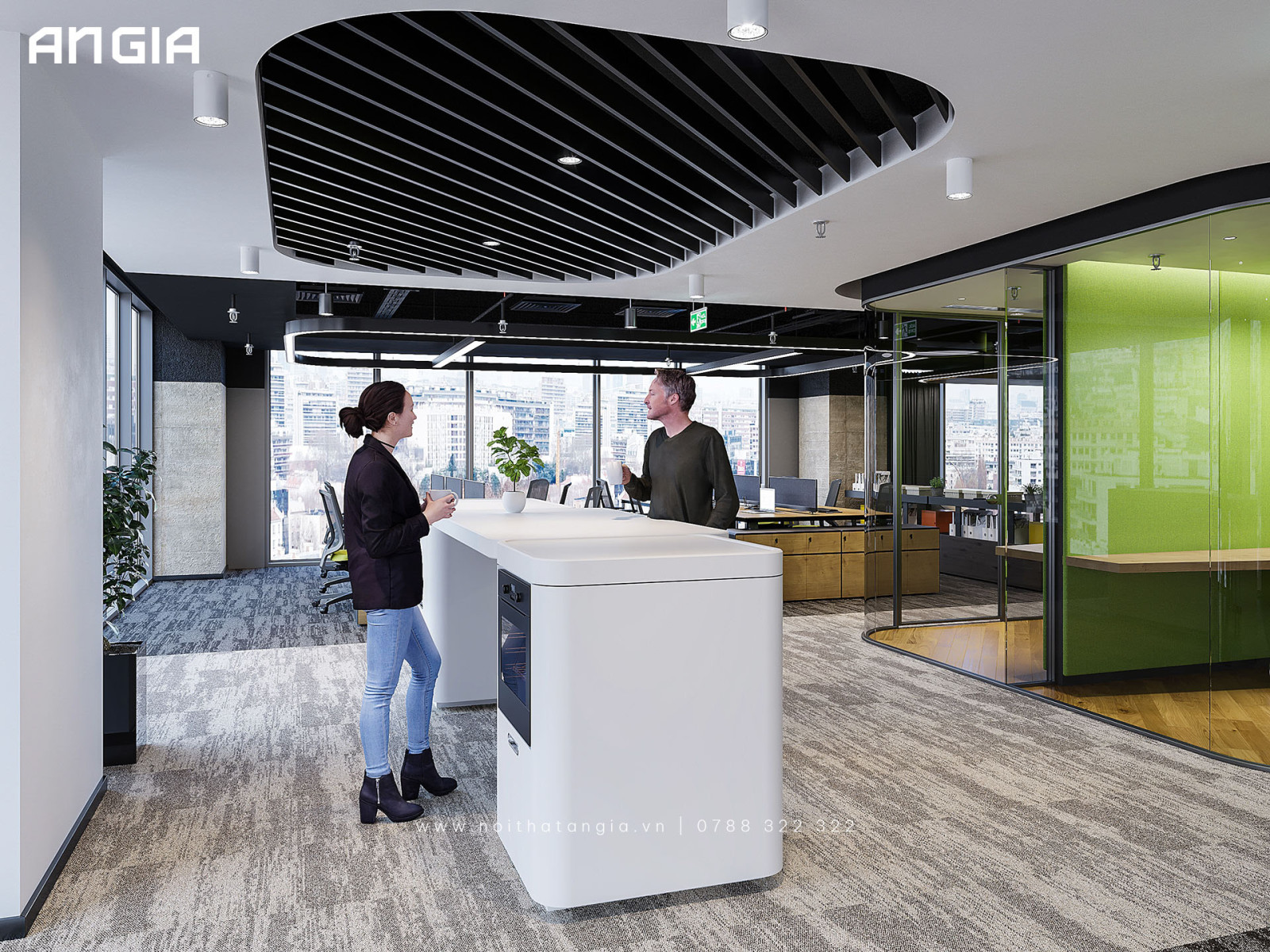 8. Khu vực nghỉ ngơi và tiếp khách: Không gian nghỉ ngơi thoải mái là quan trọng để nhân viên có thể nạp lại năng lượng. Tạo ra một góc nghỉ ngơi với ghế êm ái, cây xanh và không gian tương tác. Đồng thời, hãy chú trọng vào khu vực tiếp khách, tạo ấn tượng tốt đầu tiên và tạo môi trường chuyên nghiệp cho khách hàng và đối tác.