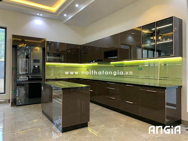 Sự kết hợp giữa nhôm và kính tạo nên vẻ đẹp trang nhã, tạo cảm giác thoải mái và mở rộng không gian bếp.