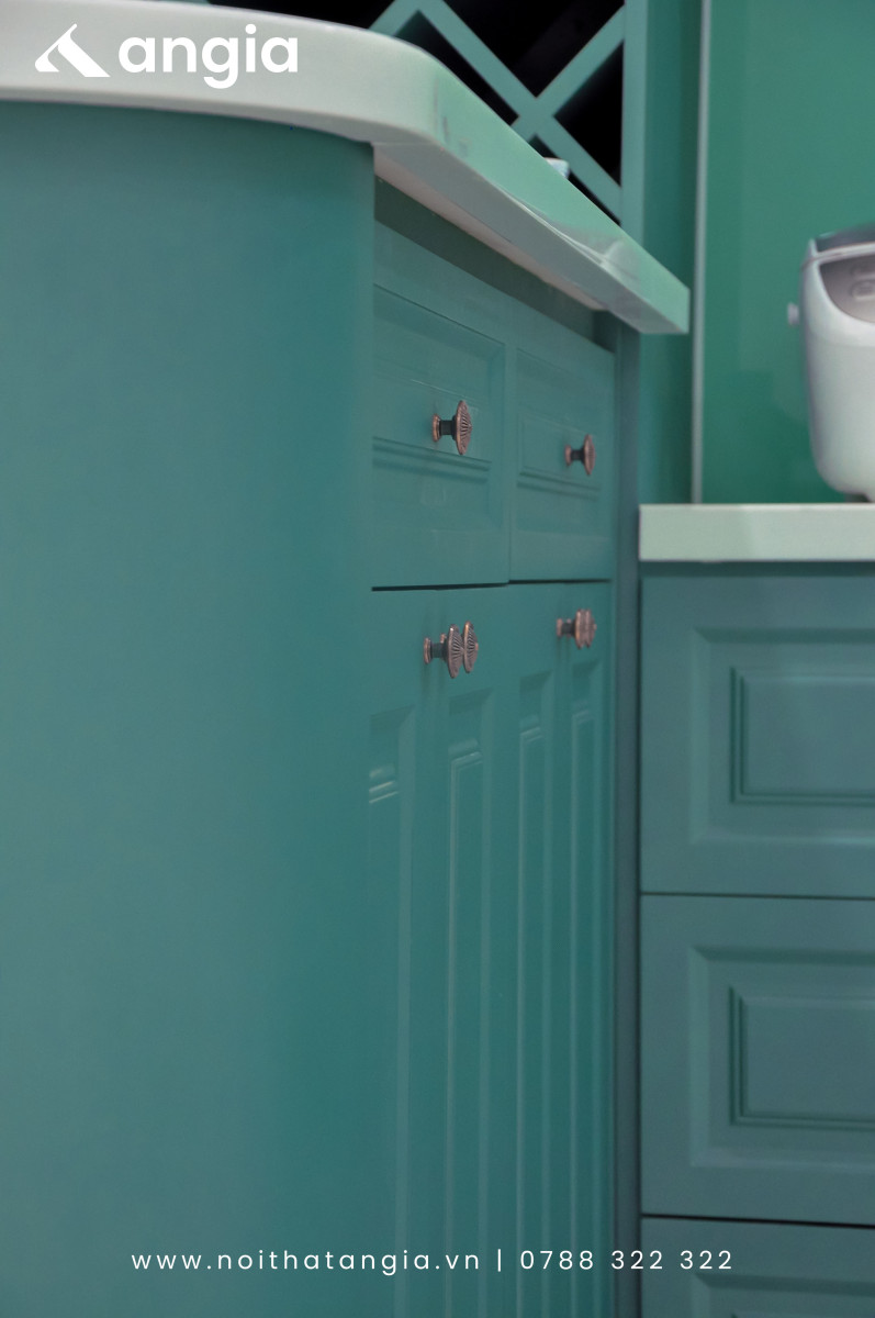 Để thi công tủ bếp tân cổ điển đẳng cấp, cần chú ý đến việc tối ưu hóa không gian bếp. Tủ bếp tân cổ điển thường được thiết kế với nhiều ngăn kéo và kệ để đựng đồ, tạo ra sự tiện dụng và ngăn nắp cho không gian bếp. Các thiết bị như lò nướng, tủ lạnh và bếp gas cũng được tính toán kỹ lưỡng để tạo ra sự cân đối và hài hòa cho tủ bếp.
