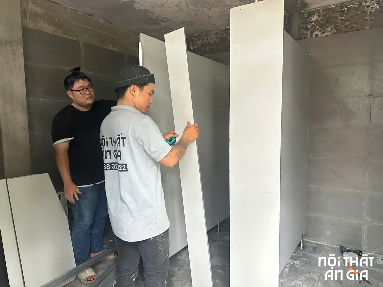 Lắp đặt và hoàn thiện: Sau khi các vật liệu đã được chuẩn bị, quá trình lắp đặt sẽ được tiến hành. Đội ngũ thi công sẽ lắp ghép vách ngăn, cửa, các phụ kiện đi kèm như tay nắm, bản lề, khóa... và kiểm tra kỹ lưỡng trước khi bàn giao cho khách hàng.